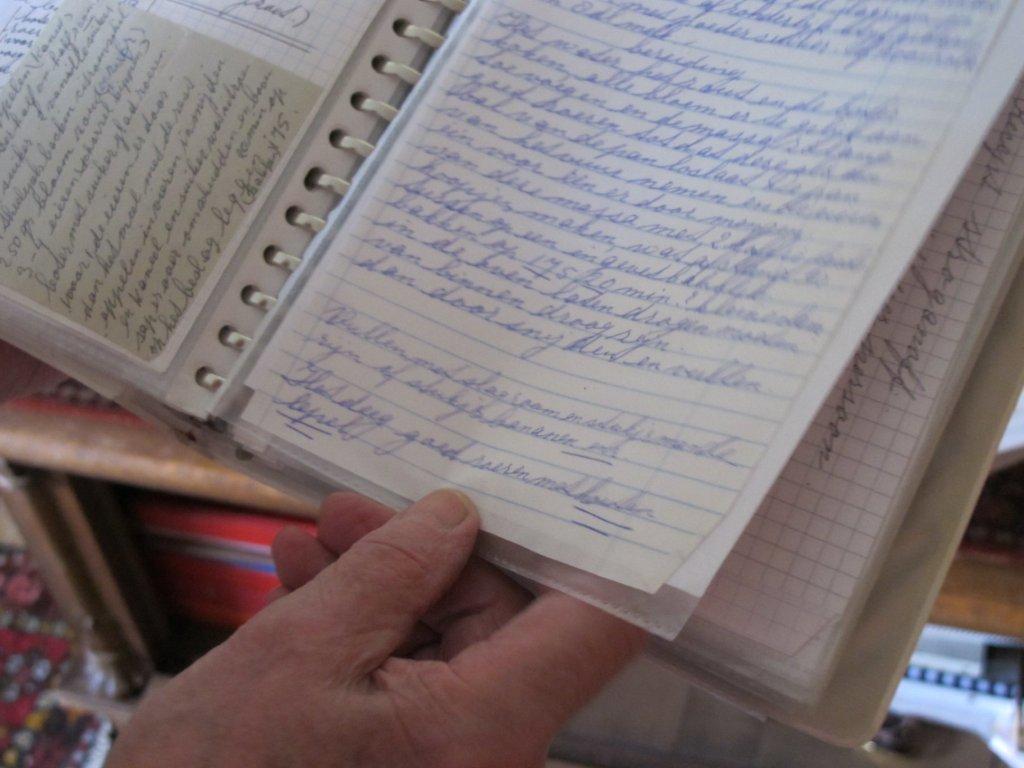 Maandagochtend gaat ze voor de gezelligheid naar een kookclub. Dus eigenlijk niet om wat te leren. Ze verzamelt al 50 jaar recepten en weetjes over koken. Alle recepten zijn ooit gemaakt en getest en goedgekeurd. Ze begon hiermee toen ze pas getrouwd was en inmiddels zijn er mappen vol met handgeschreven recepten. De mappen liggen rijen dik onderin de kast. Ze weet precies welk recept in welke map zit. Het zijn overgeschreven en uitgeknipte recepten en veel receptenkaarten. Op de receptenkaarten staan vooral taarten en die komen vaak uit Duitsland.