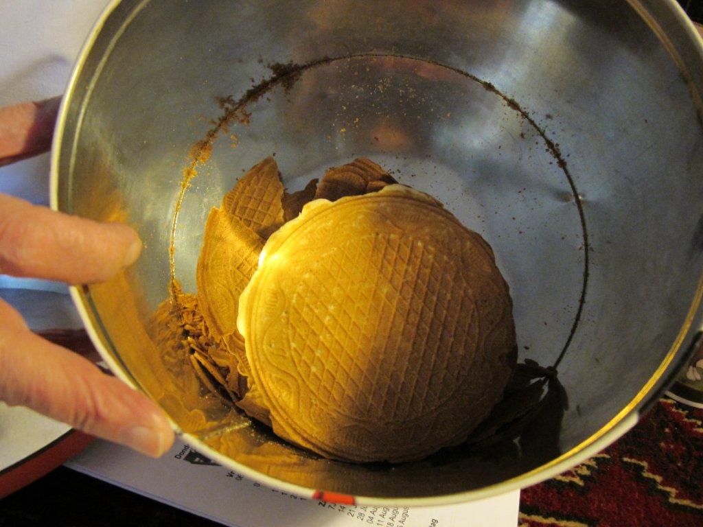 Ze heeft nu twee trommels vol met knapperige wafels.